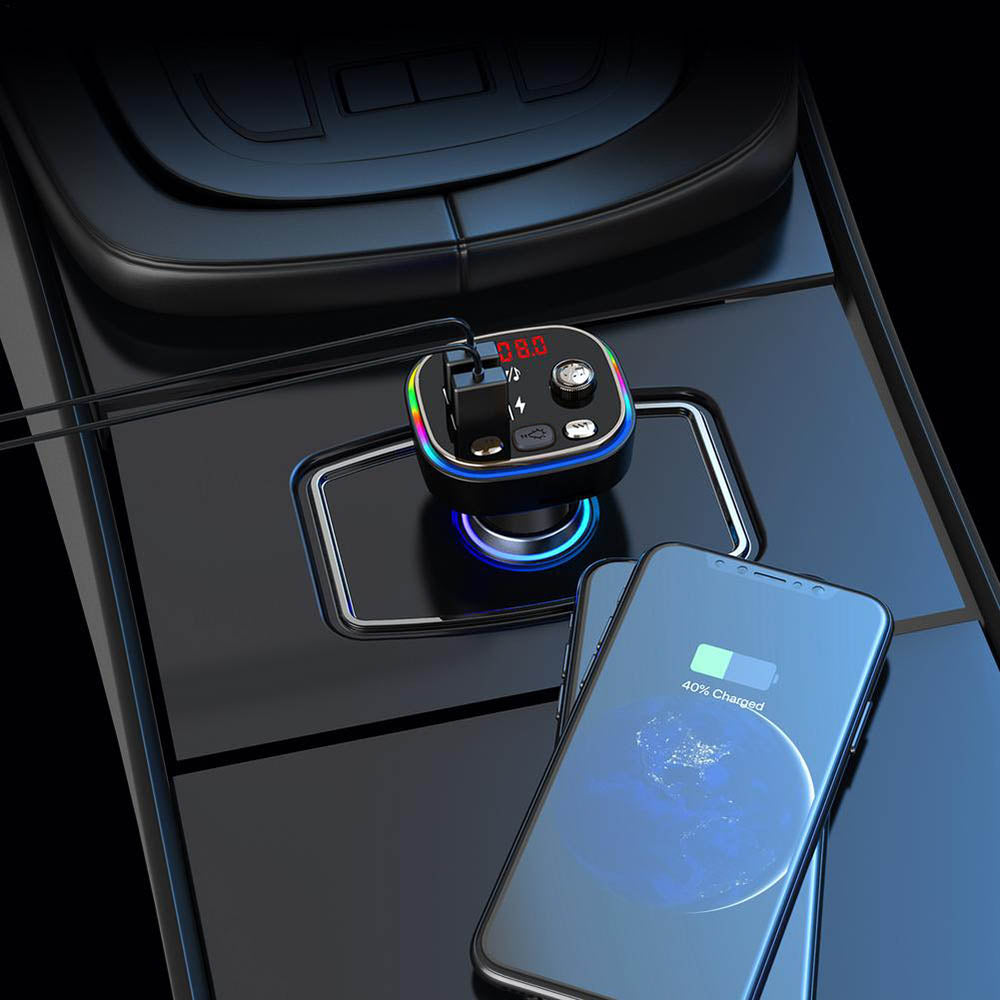 Multifunkčný transmitter do auta, dosah 5 metrov, na telefonovanie a počúvanie hudby, je vhodný aj na nabíjanie mobilného zariadenia, pripojenie_ USB, bluetooth.